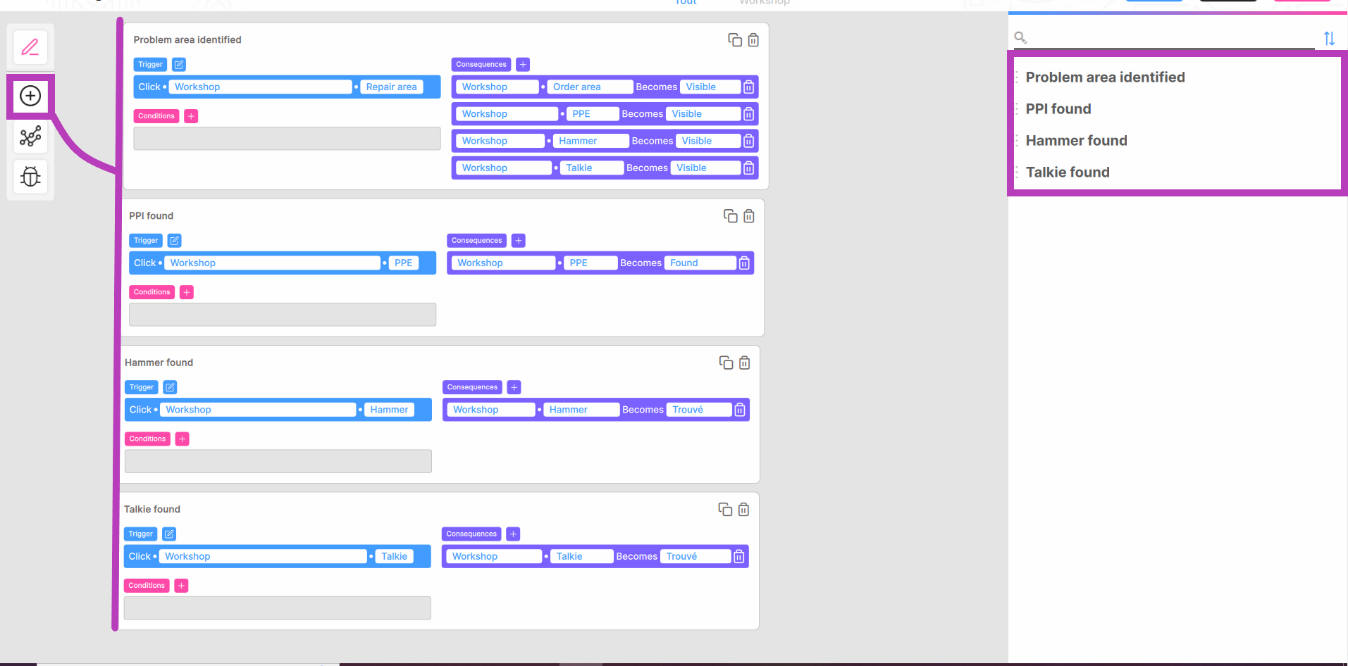 Your items are transposed into the scene. It is time to create interactions between items. To facilitate this part of the job, you can cut your scenario.