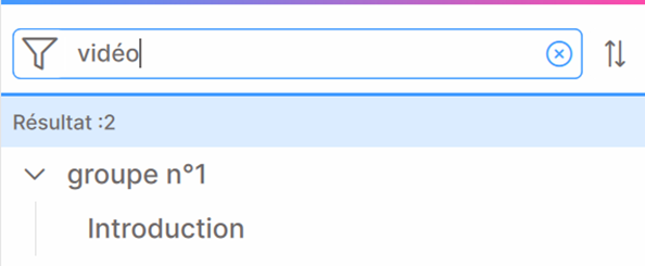 Lorsque vous tapez un mot, les éléments contenant un paramètre visé par ce mot apparaissent.
